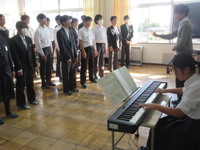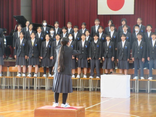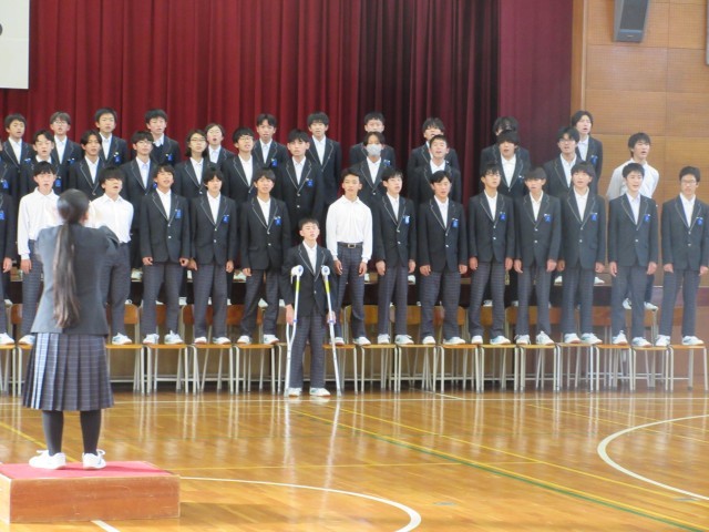 今日は2年生がリハーサルを行いました。当日はクラス曲と学年合唱曲の2曲歌いますので、保護者の皆様はどうぞご参観ください。