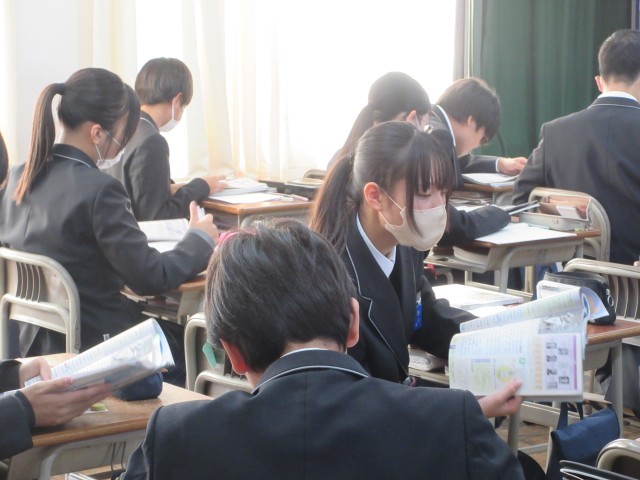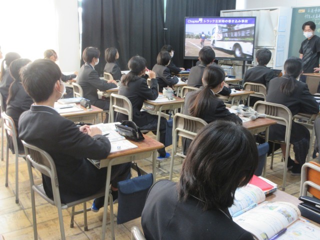 保健の授業では、傷害の防止について考えました。動画を視聴しながら、普段の生活にひそむ事故から身を守る方法を考えました。