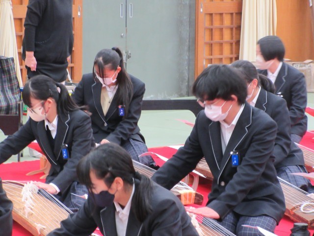 日本の伝統文化である筝を、中学生の皆さんが真剣に、そして楽しんで演奏していることに心から敬意を表します。一音一音に心を込めて弾いています。