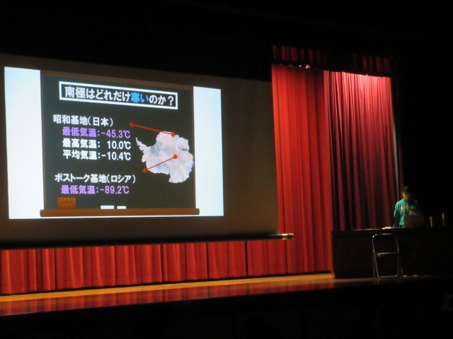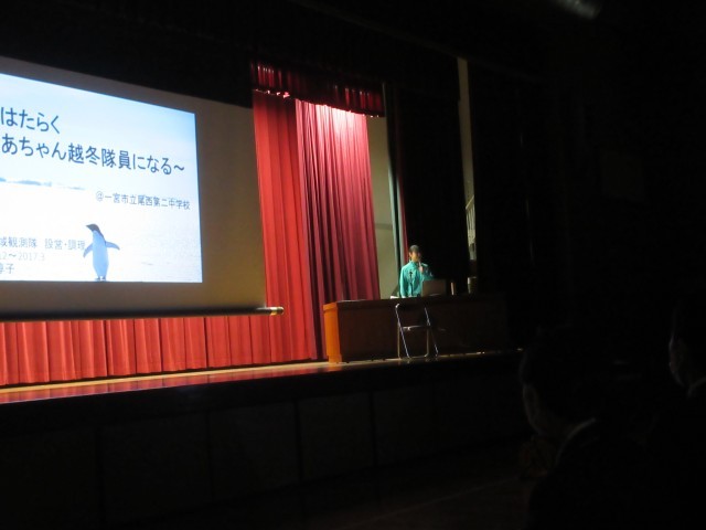 第57次南極地域観測隊の調理隊員として極限の環境下で隊員たちの「食」で支えられた渡貫淳子様の70分の講演でした。1年4カ月の南極での生活の中で、人間関係の構築のしかたや生活を制約せざるを得ない状態で、研究をし続けた内容をわかりやすく話をしていただきました。普段の生活がいかに便利なのものか。食事をいただくときには作った人への感謝の気持ちをもってほしいということ。