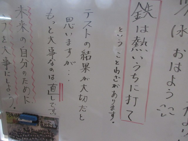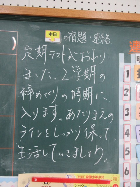 テストが終わり、そのあとの見直しが大切であること。生活を平常に戻していくこと。2年生では、進路学習として「上級学校の話を聞く会」を行う準備をしていくこと。どれも大切なことです。