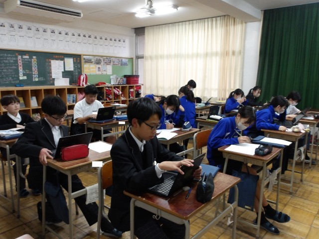 二中タイムでは、先日行った職業人から学ぶ会でみえた講師の方へのお礼状書きを行いました。気持ちを込め、真剣に書く姿が多くみられました。2学期もあと1週間。いい締めくくりができるようにしていきましょう。