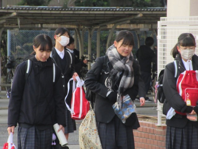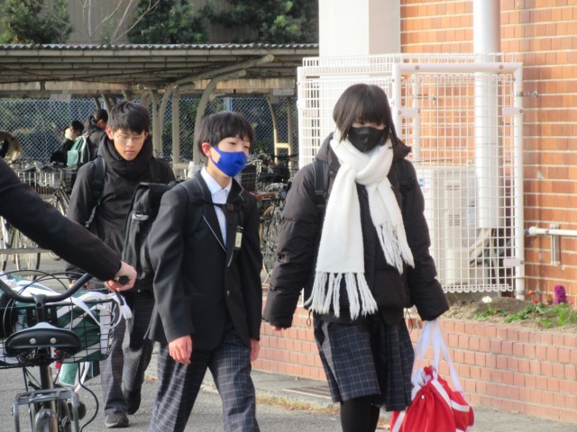12月なのに暖かい朝を迎えました。友達と楽しそうに学校へと登校しています。