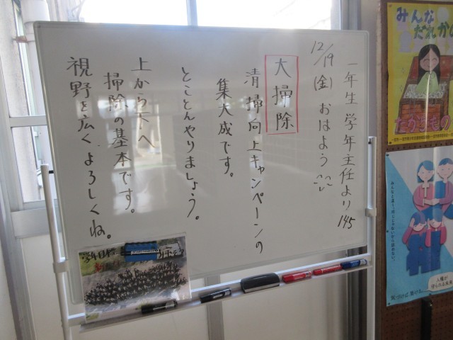 今日は午後から大掃除です。2学期間の汚れを落とし、新しい年を迎えましょう。