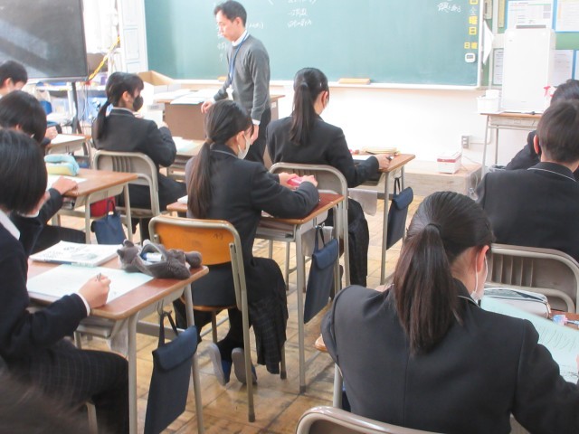 3組の数学の授業では、冬休みの課題を受け取りました。1年生の復習の内容のようで、思い出ししっかり基礎学力を上げてほしいと思います。