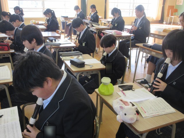 音楽の授業では、アルトリコーダーを使って「もののけ姫」の主題歌を演奏しました。指の使い方がなかなかスムーズにいかず、苦戦している生徒もいました。