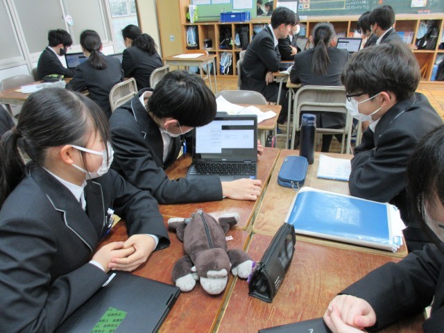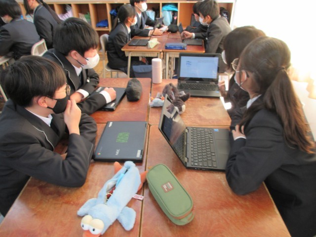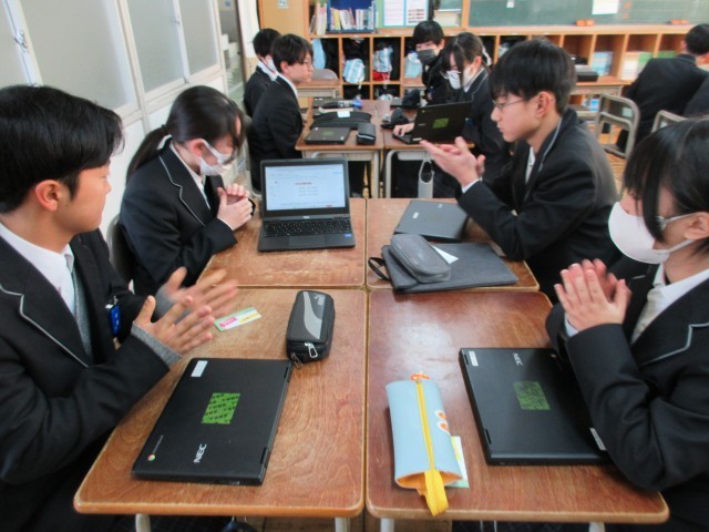 今日の5限に、二年生は職業探究プレゼンの練習をしました。まずは4人のグループで発表の練習。