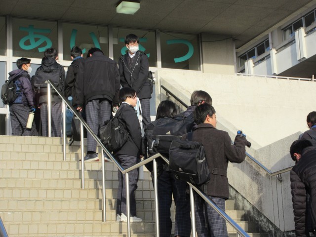 通常の日も昇降口が開く前に登校して待っている人を数人見かけます。早すぎず、遅すぎず・・・ゆとりをもって登校してください。