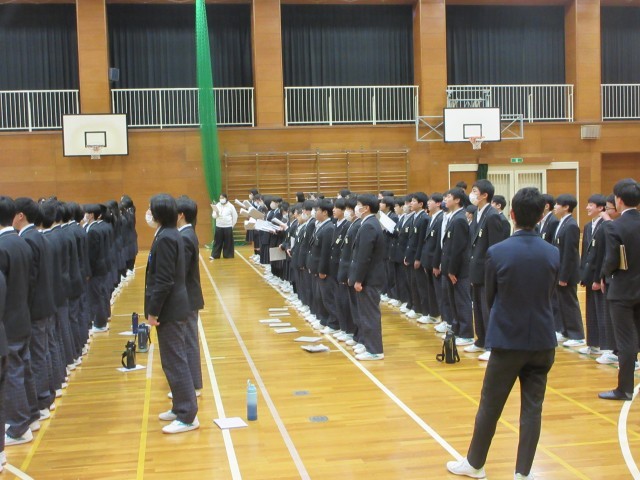 7時間目に体育館で1・2年生が卒業生を送る会で歌う曲の練習をしていました。初めて1・2年生が合同で練習しました。