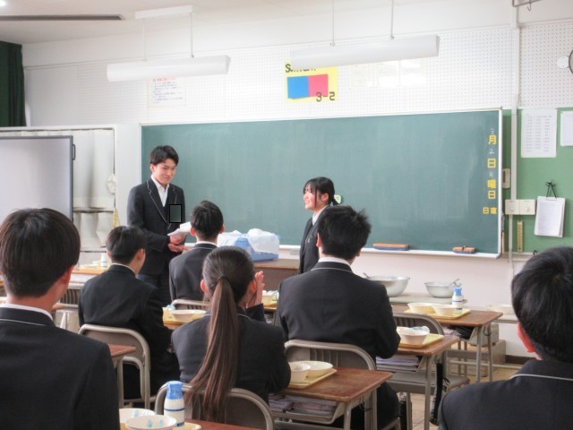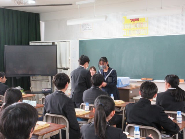 卒業生を送る会に向けて、代表生徒が招待状を渡している様子です。明日は送る会当日です。お世話になった先輩方へ感謝の気持ちを向けて、一生懸命に準備した出し物を届けたいと思います。3年生にとって思い出に残る会になることを願っています。