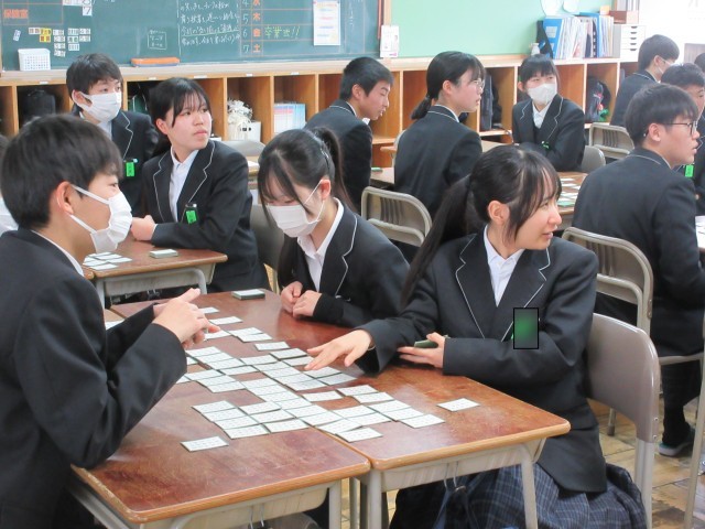 2時間目の授業の様子です。国語の授業では、百人一首の世界に没頭していました。読まれた「上の句」に対応して「下の句」を素早く見つけてとっていく姿が印象的でした。