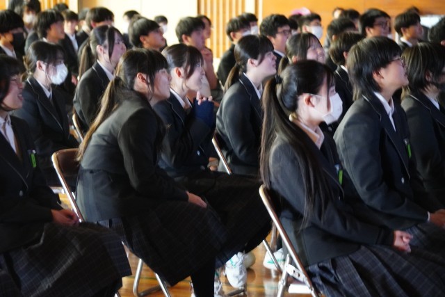 会の結びには卒業生代表生徒から在校生へのメッセージと学年合唱が贈られました。卒業生が残してくれた最後のメッセージと歌はとても深く心に響きました。残された在校生は、先輩に追いつき、追い越そうとがんばる勇気をもらったと思います。