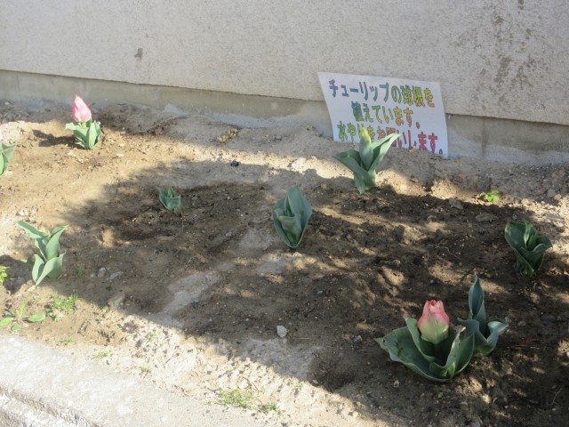 春らしいそよ風が吹いています。花壇のチューリップも少しずつ開花してきました。桜の木々も今か今かと待ち続けているようです。