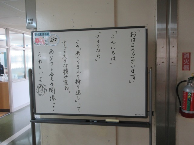 2組のクラス議員のあいさつ運動も今日が最後となりました。半年間、学校のためにありがとう。
