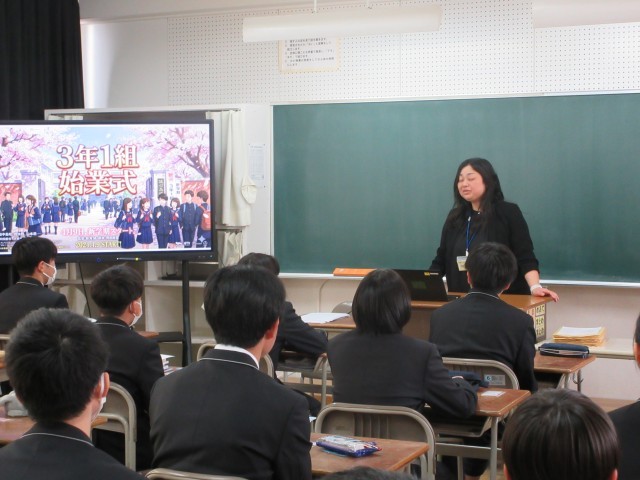 3年生の学級活動のようすです。新しいクラスで新たな出会いの中、担任の先生の自己紹介やクラスへの思い、今後の連絡などが伝えられました。