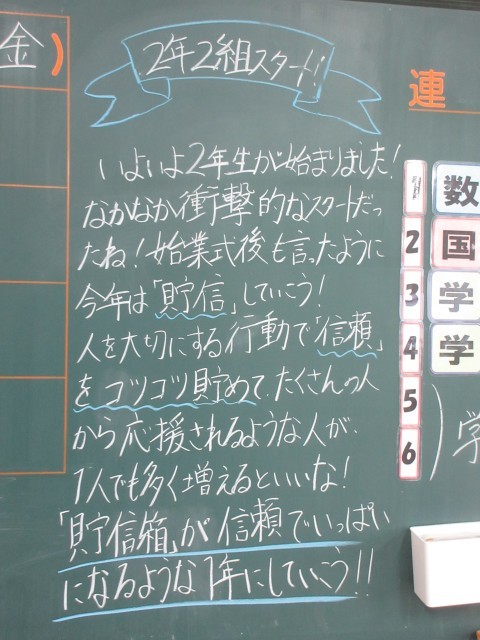 授業が始まれば、いつかは消されてしまう文字かもしれませんが、担任からのメッセージから伝わる安心感は、これからの1年を支える確かな土台となるはずです。
