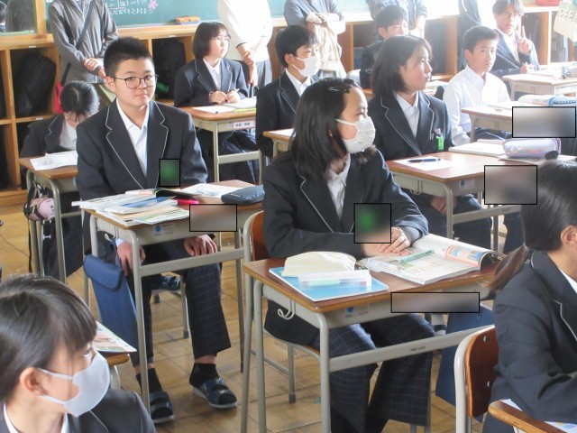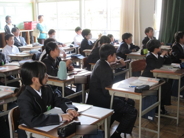 各教室では、担任による授業が行われました。 保護者の方々に見守られ、少し緊張した様子もありましたが、どのクラスでもしっかり顔を上げて先生の話を聞く姿や、自分の考えを友だちに伝える活発な意見交換が見られ、非常に充実した時間となりました。こうした日常の学びの積み重ねが、生徒たちの成長に繋がっています。 ご多用の中、生徒たちの頑張りを温かく見守ってくださった皆さまに、心より感謝申し上げます。