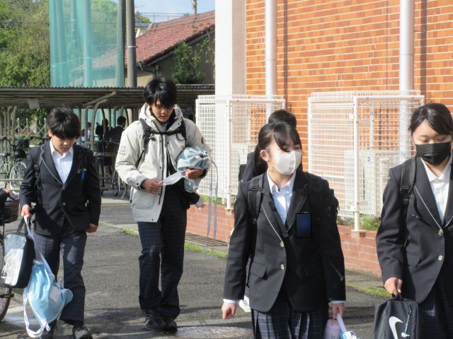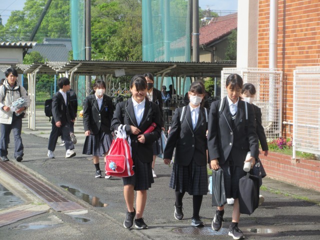 昨日降った雨の影響か、地面が濡れている中、楽しそうに笑顔で登校してくれました。