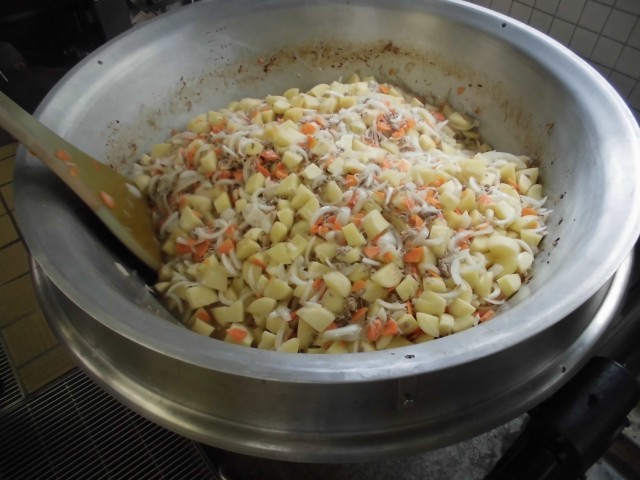 今日は、「正しいはしづかいの日」でした。はしは、はさむ、切る、運ぶなど多くの動作ができる優れた道具です。正しいはしづかいは、一緒に食事をする相手と良い時間を過ごすための気遣いでもあります。食事の時に意識して食べられると良いですね。今日の給食の「肉じゃが」は、旬の新じゃがいもと新たまねぎを使いました。新玉ねぎや新じゃがいもはみずみずしいのが特徴です。調理室では、ほぼ野菜から出てくる水分で作り上げたので、うま味がギュッとつまったおいしい肉じゃがが出来上がりました。