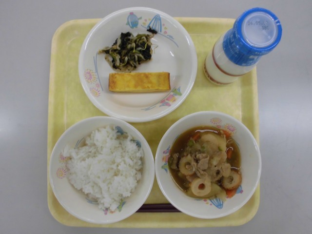 ご飯・牛乳・厚焼き卵・いそか和え・肉じゃが