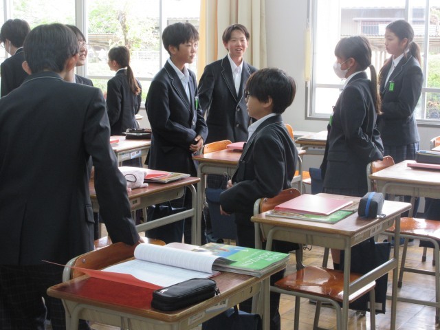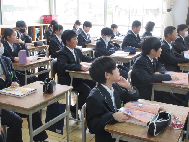 少しずつ授業に慣れてきたようです。集中して話を聞いています。