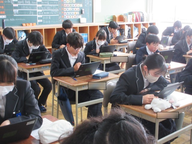 本日、3年生を対象に「全国学力・学習状況調査」が実施されました。今日は英語(「読む」「書く」「聞く」)の調査が行われました。3年生の生徒たちは、これまでの学習の成果を存分に発揮しようと、最後まで諦めずに高い集中力で問題に向き合っていました。