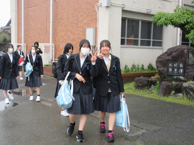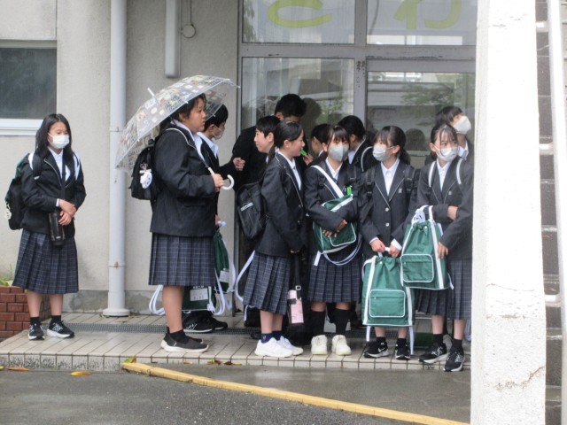 雨の月曜日、カッパを着用しての自転車通学となりました。 特に1年生のみなさんは、新しい環境に慣れようと早めに登校してくれているようですが、現在、校舎の開錠時間よりもかなり早く到着する生徒が増えています。