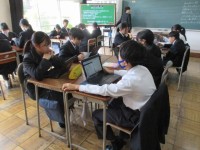 9月14日(水) 文字を生かしたデザイン(1年生) 公開日 2022/09/14 更新日 2022/09/14 1年生 「漁,海,星,夜,・・・」,一人一文字漢字を選び,文字を生かしたデザインを考えました。漢字をイメージし,彩色にグラデーションを取り入れるなど,自分なりに工夫することで一つの作品に仕上げます。彩色は始まったばかりです,完成が楽しみですね。
