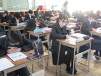 6時間目の学年合唱リハーサルに向けて、1時間目の前に体育館で、各クラスの合唱時の隊形をステージを使って確認した後、学年合唱の隊形確認とパート練習を行いました。