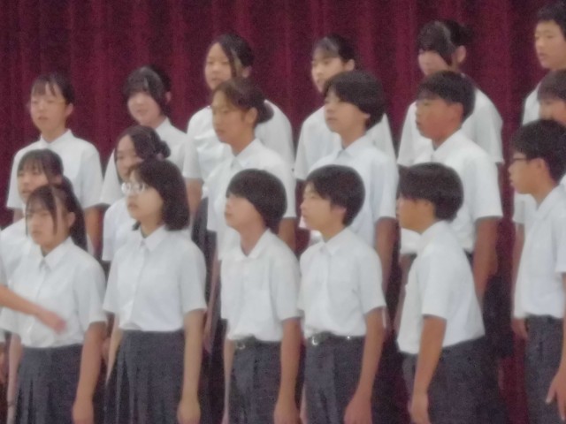 午前中は合唱祭が行われました。夏休み前から曲を決めたり、伴奏の練習をしたり、歌の練習については約3週間毎日練習してきました。声や音が出ないとか、強弱、たくさんのことを改善しながら練習してきました。本番ではどのクラスも今までになく大きな声で、素晴らしいハーモニーを奏でることができました。
