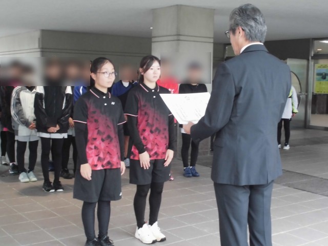 本日は、早朝からお弁当づくりや送迎をしていただき、ありがとうございます。今後とも女子ソフトテニス部の応援をよろしくお願いします。