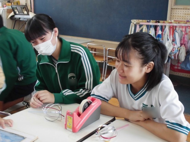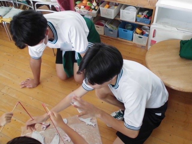 1学期の授業から、どんなおもちゃを作っていったら喜んでもらえるかを考え、夏休み期間中に制作を行いました。最初は、緊張している様子も見られましたが、園児と手作りおもちゃを通じて触れ合っていくうちに表情も和らぎ、いつもの学校生活では見ることのできない一面をたくさん見ることができました。学校の授業だけでは得られない貴重な体験をすることができました。