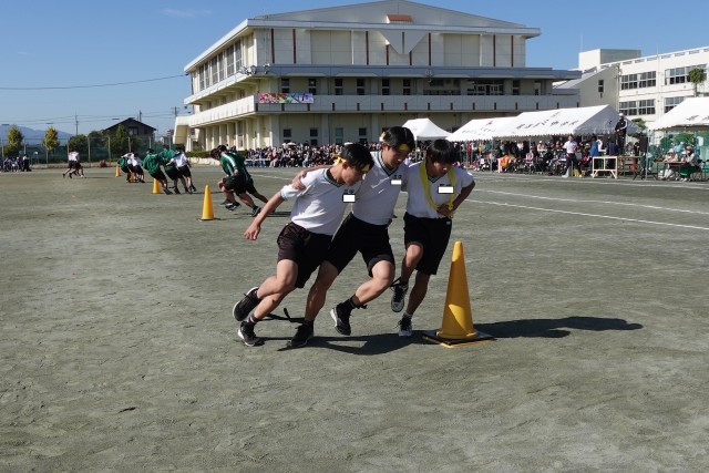 本日、晴天の中体育祭が行われました。どのクラスも練習の成果を発揮しようと、一生懸命競技に取り組みました。また、仲間を応援するために、大きな声で声援を送ったり、拍手をしたりする姿も見られ、一体感を感じることができました。思い出に残る体育祭となりました。
