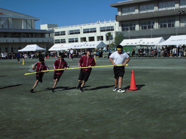 先日の体育祭の様子です。どの生徒も、交流学級で力を発揮することができました。級友の温かい声掛けに、笑顔を見せる場面がたくさんありました。