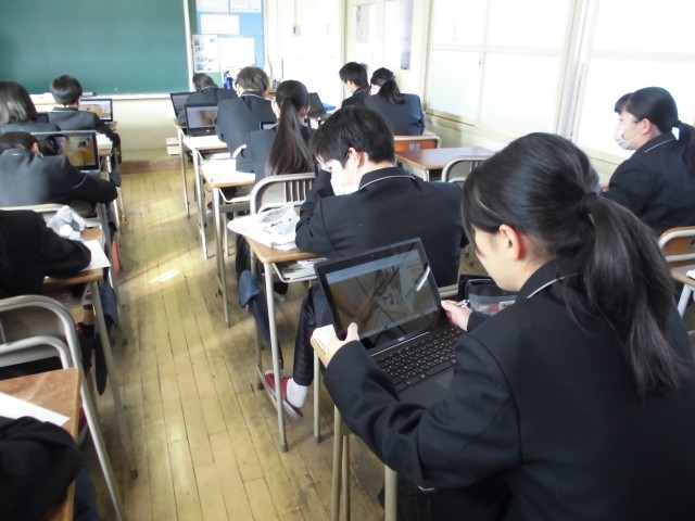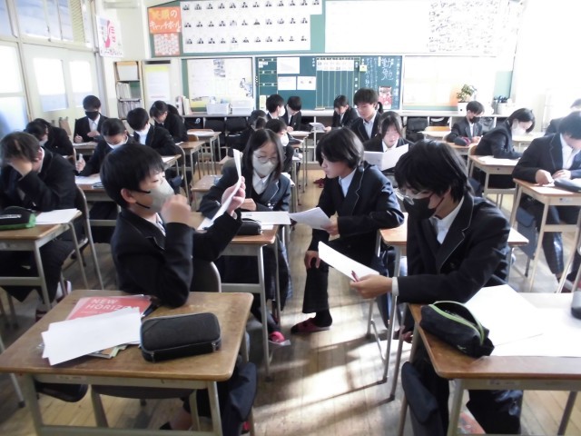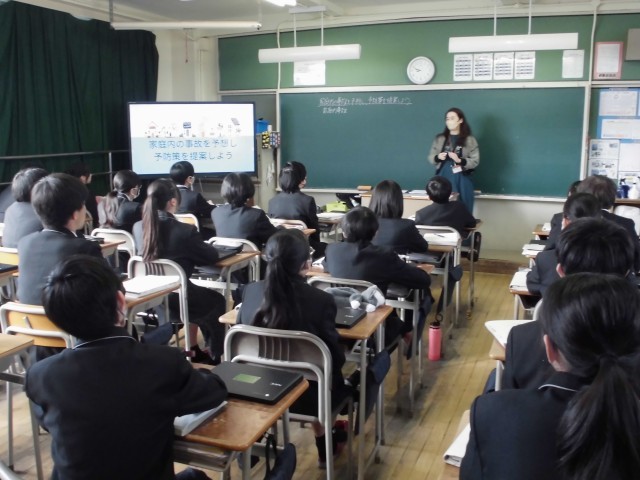 本日の授業の様子です。1、2枚目は家庭科の授業で、家庭内での考えられる危険について、子どもや大人、高齢者など様々な目線でどのような危険があるか考えました。3枚目はテスト返却後に復習をしている様子です。