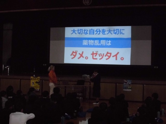 薬物乱用の一例として、まずは身近なたばこや電子たばこ、市販薬の乱用によるオーバードーズ、さらに踏み込んで大麻、覚せい剤などの危険性について講演して下さりました。