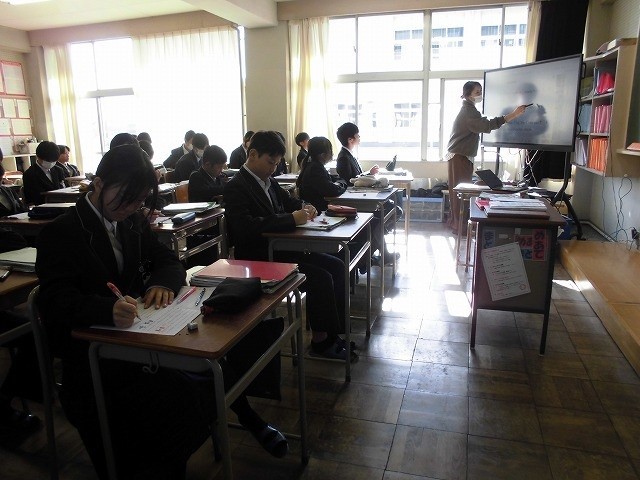 12.11 授業の様子(1年生) 公開日 2025/12/11 更新日 2025/12/11 1年 1枚目は2組の英語、2枚目は4組の数学の授業の様子です。数学では平面図形で、おうぎ形作製器を使って学習をしていきます。