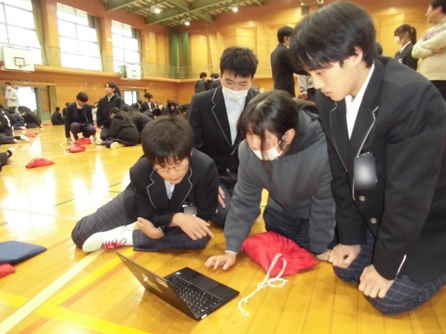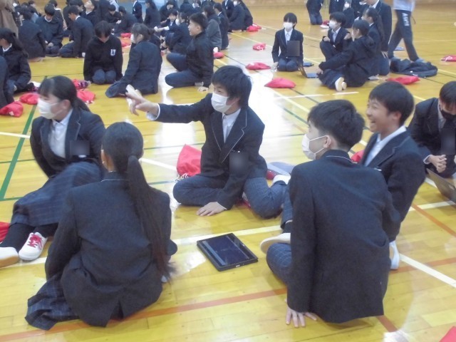 12.17 学年レクリエーション(2年生) 公開日 2025/12/17 更新日 2025/12/17 2年 本日、学年でレクリエーションを行いました。班の仲間と協力しながら、クイズの答えを考えました。