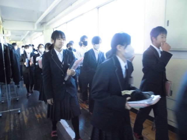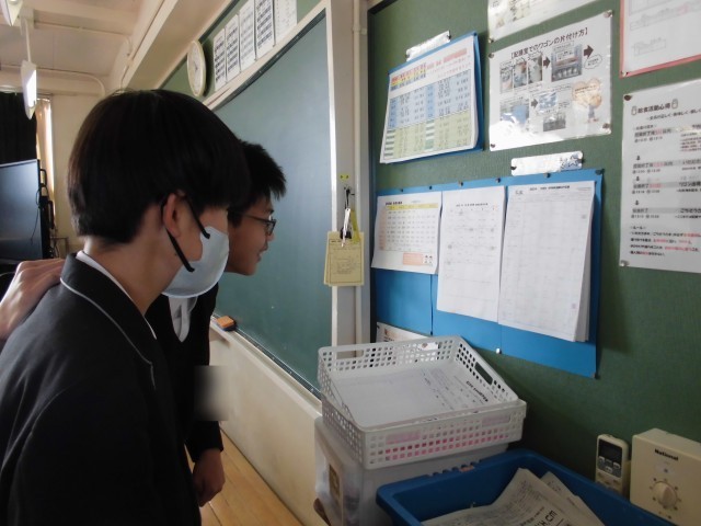写真は2年生の放課の様子です。次の授業に間に合うように準備や移動をしているクラス。移動がないクラスは、課題の確認をしたり献立を見たりして落ち着いて過ごしています。