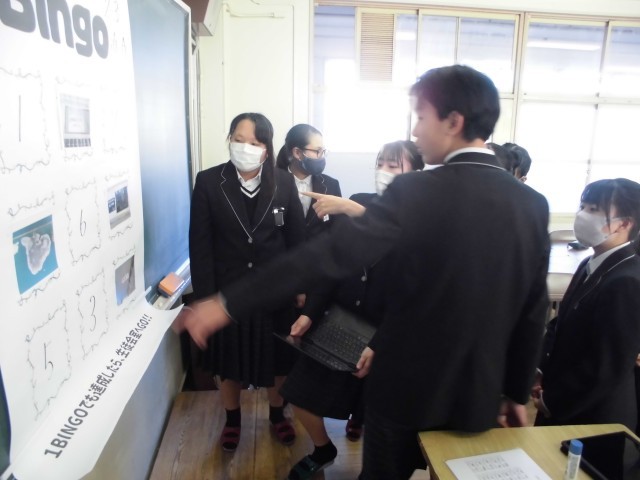 今日の6時間目に大掃除がありました。2学期中に溜まったほこりや汚れなどを一生懸命に集めたり落としたりすることができました。また、7時間目の生徒会企画では、学年の壁を越えて協力してレクリエーションに参加することができました。