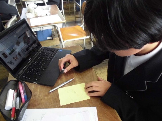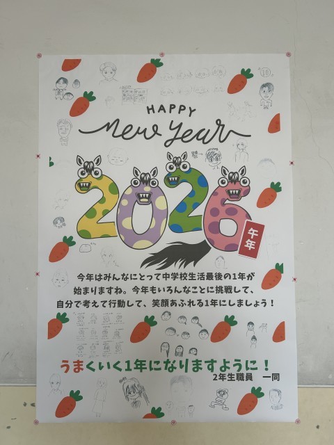 始業式の後には、冬休みの課題を提出したり、3学期の目標や思い思いの「うま」をかいたりしました。