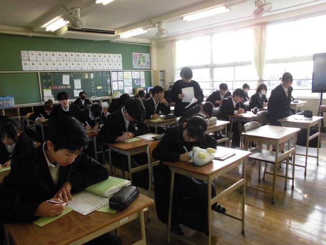 1時間目に、お世話になった先生方へ手紙を書きました。今までの感謝の思いを真剣に書いている様子が印象的でした。また、本日から3日間、愛知県の私立一般入試が始まりました。寒い日が続きますが、体調には十分に気をつけて、入試に備えてほしいと思います。