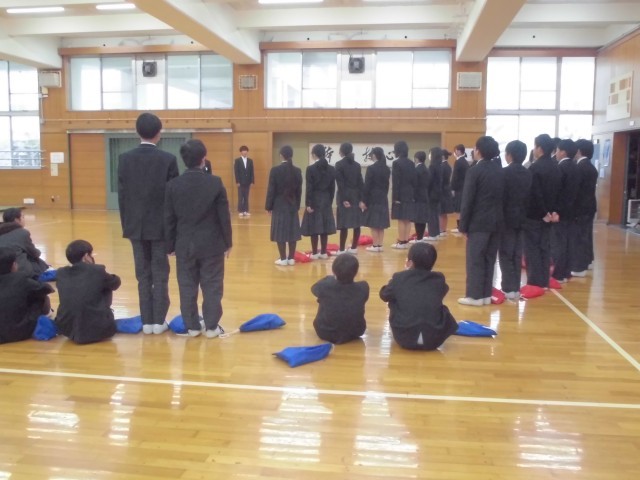 学年末テストも終わり、三年生を送る会のブロックの出し物の練習が再び始まりました。2年生のリーダー中心になり、2年生が1年生に手本を見せたりして3年生に思いを伝えようと頑張っています。