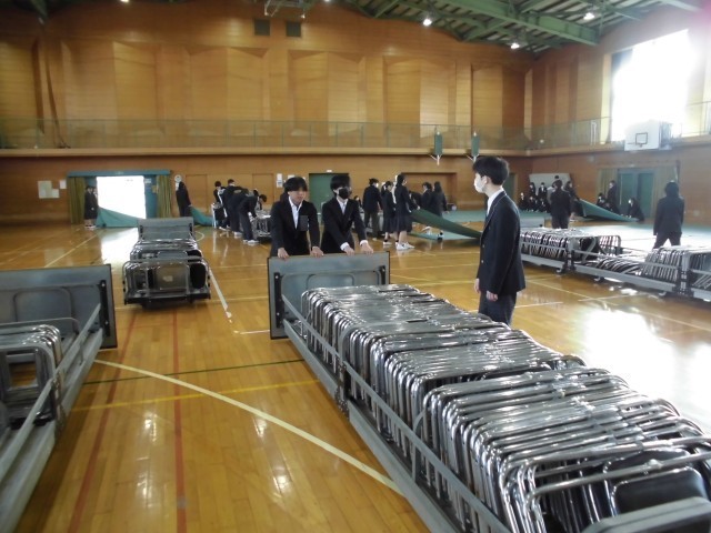 2.24 招待状贈呈式&体育館椅子並べ(2年生)