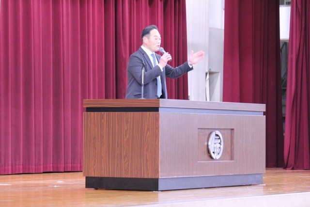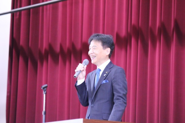 一宮市長の中野様、市議会議長で同窓会会長の則竹様、市教育長の高橋様、3名のご来賓と、講師に元関脇琴錦、朝日山親方にご来校いただきました。
