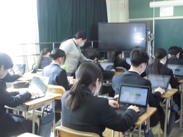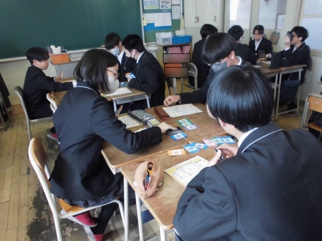 1枚目は1組の国語の様子です。国語の授業を通して学んだことについて、スライドにまとめていました。2枚目は5組の理科の様子です。カードを用いて、化学式への学びを深めていました。3枚目は進路説明会の様子です。今後の進路について、資料を見て、説明を聞きながら考えていました。2年生として過ごす時間は残りわずかです。自分の進路に向けて、何が必要か考え、行動し始めてほしいと思います。