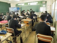 写真は3限の社会、数学、理科の授業の様子です。先生の話を集中して聞き、ノートにまとめていました。