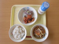 今日の献立は、牛乳、ご飯、コロッケ、鉄骨和え、けんちん汁 です。 今日の鉄骨和...