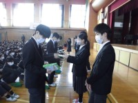 本日の朝礼の後に卒業生を送る会の招待状の贈呈式を行いました。その後、卒業生を送...