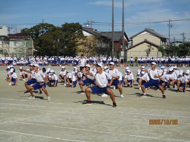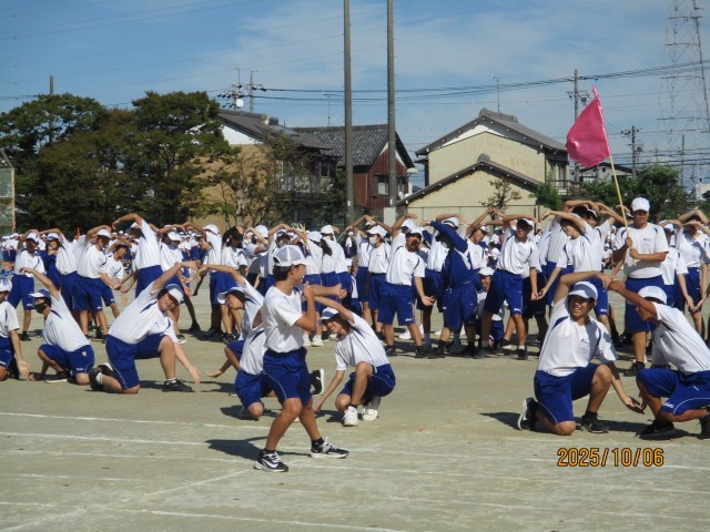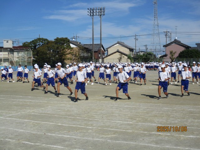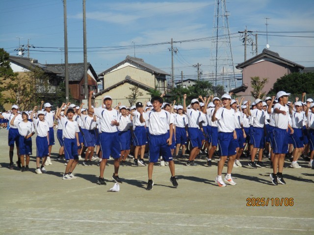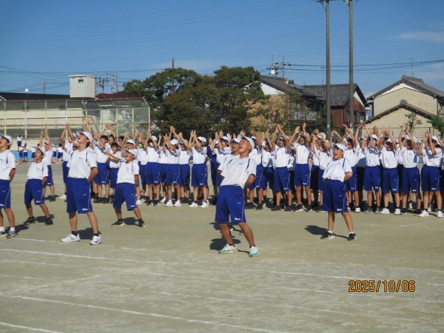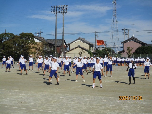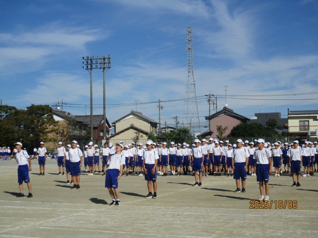 10月6日(月)学校の様子『体育祭練習7日目』 公開日 2025/10/06 更新日 2025/10/06 学校の様子 今日は体育祭練習7日目でした。トラック内での応援練習と最強リレー(群団対抗リレー)の通し練習をしました。少し暑い中でしたが、元気よくできました。台風の影響で当日の天気も心配ですが、無事にできることを願っています。10月9日(木)は天候関係なく弁当が必要になりますので、ご準備願います。 +5